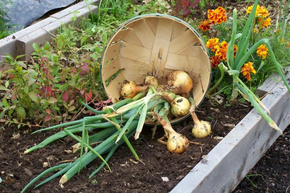 During the summer of 2011, I grew enough onions to last a year. Here are some I had grown next to marigolds.