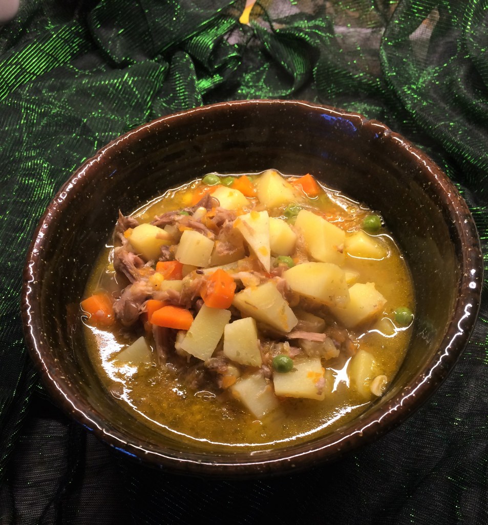Once I got it home and washed, I dreamt of the soup I’d eat from it. The more I stared at the bowl, the more inspired I was to make soup. So, the day after I baked a pork roast, I took the leftover scraps of meat and the cooking juices and made this delicious soup.