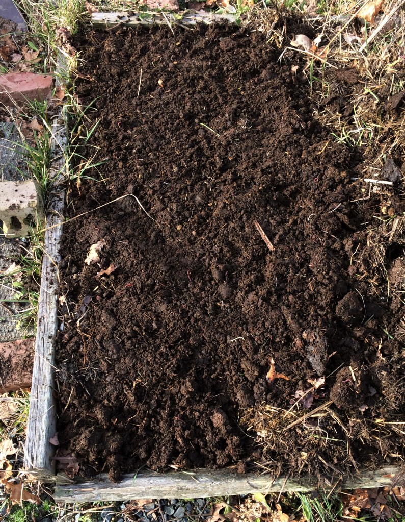 Here is the upper bed of garlic. It contains most of the cloves. Although chickens pecked and dug around it all spring, the garlic did find.